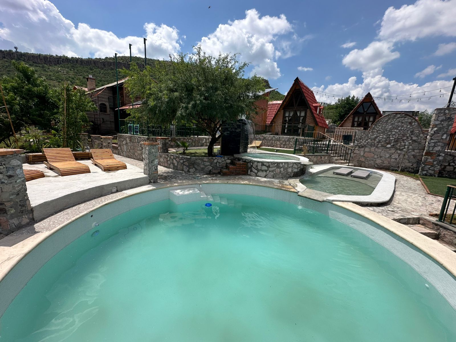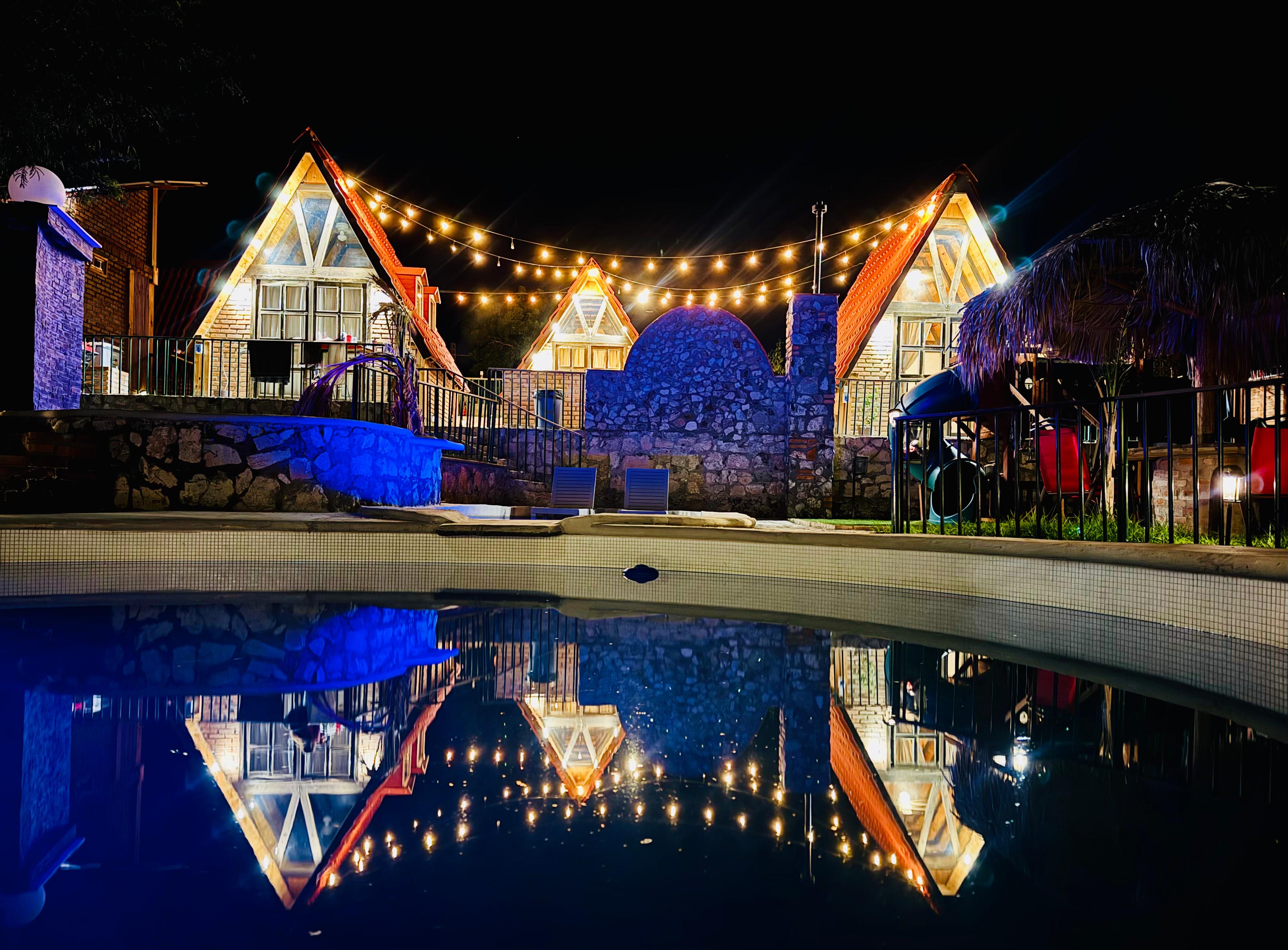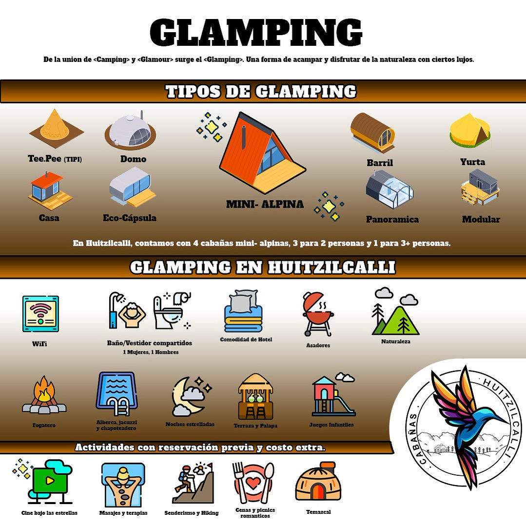 CABAÑA PARA 2 ADULTOS Y 1 NIÑO. TLALLICALLI (TIERRA) Alpina con 1 cama matrimonial. Segundo Piso con cama individual para niño. 1 Baño de hombres y 1 de mujeres completos compartidos en área glamping de 4 cabañas alpinas. Fogatero y asador compartidos en área glamping de 4 cabañas alpinas. Acceso a área común de alberca, jacuzzi, chapoteadero, palapas y juegos infantiles. (Pregunta por el costo de cargas de leña extra.)